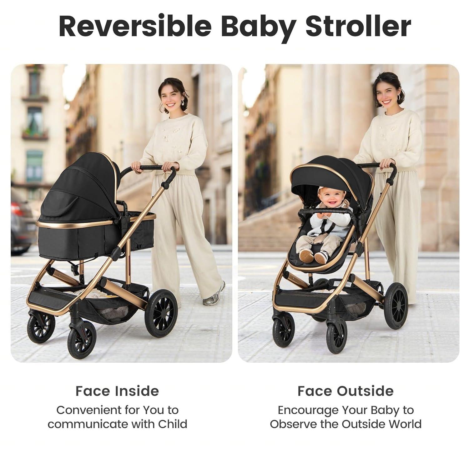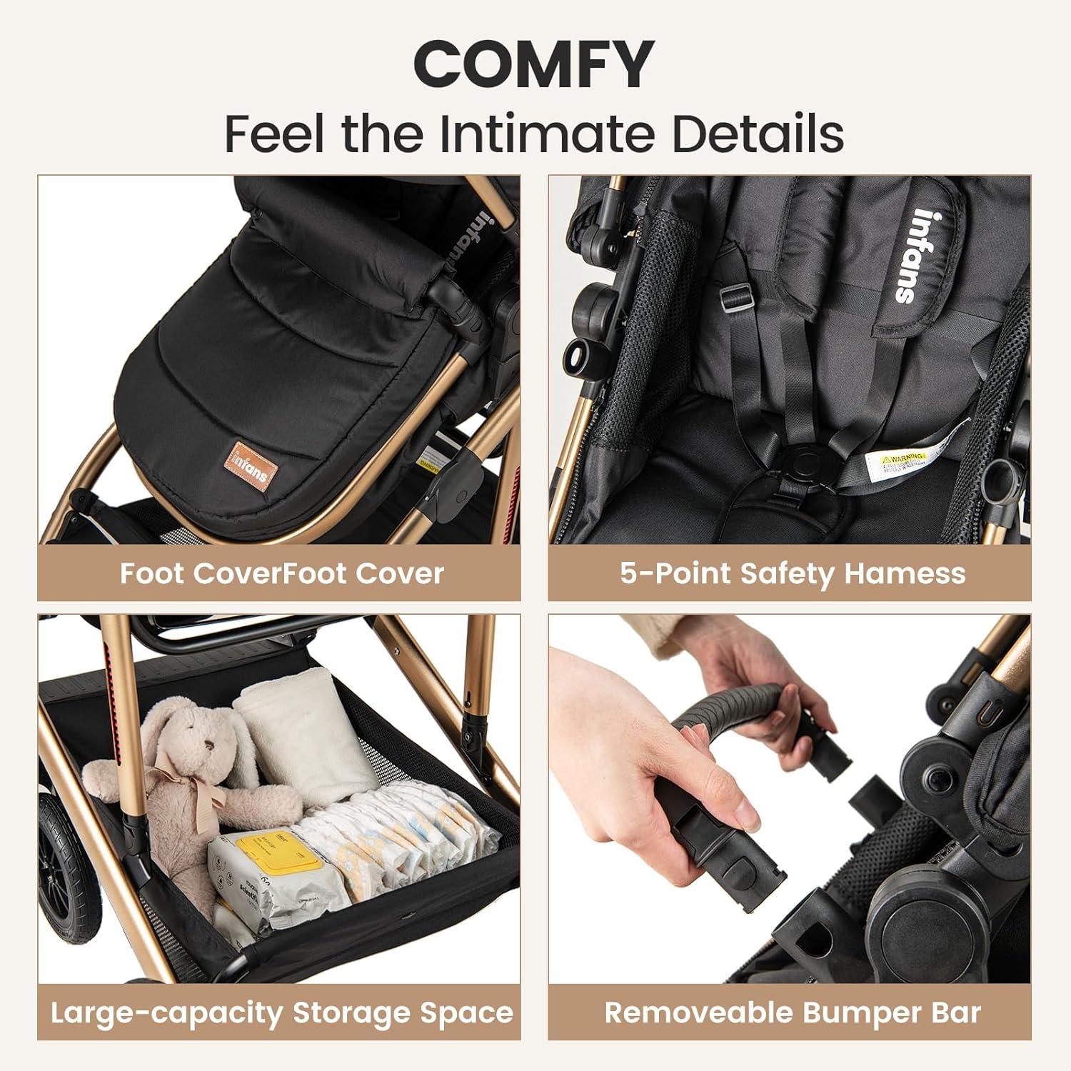 2 In 1 High Landscape Convertible Stroller: INFANS infant stroller is specially designed to meet the different needs of babies as they grow up. The basket can be adjusted to 2 modes. When the basket is facing the parents, the parents can take care of the baby at any time and pay attention to the baby's movements. With the basket facing out, baby can enjoy the scenery outside.