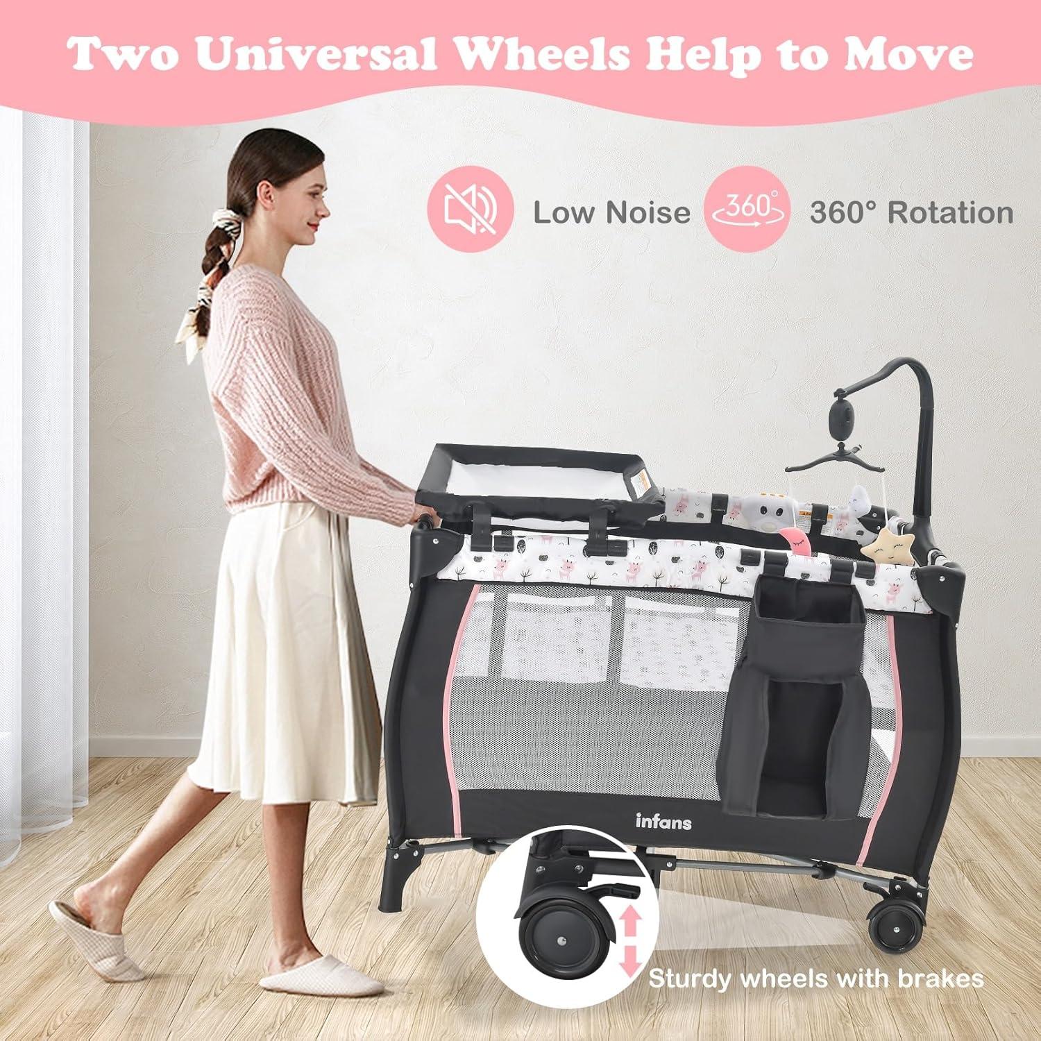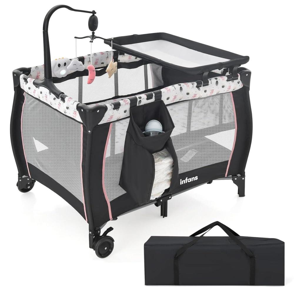 Safety is always a top priority when choosing a crib. INFANS 3-in-1 Portable Crib uses non-toxic, odourless materials to ensure a healthy and comfortable environment for your baby. A detachable diaper table provides daily care for your kids. This one also comes with a side pocket for some precious supplies. In addition, music box and toy hanging poles help infant sleep better and also provide entertainment during playtime. Overall, choose a 3-in-1 multifunctional crib with advanced features, combined with quality and safe materials, to provide peace of mind and practical parenting solutions for parents.