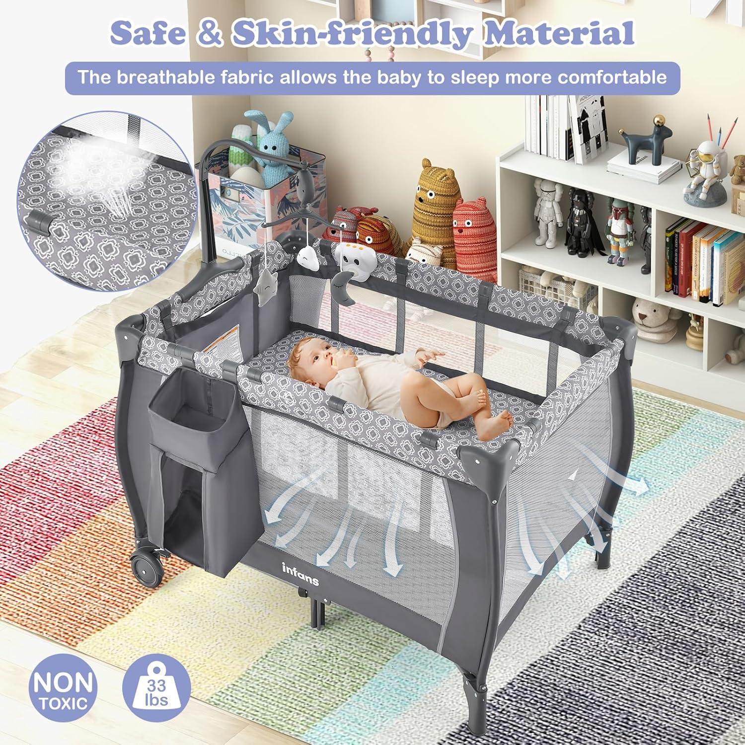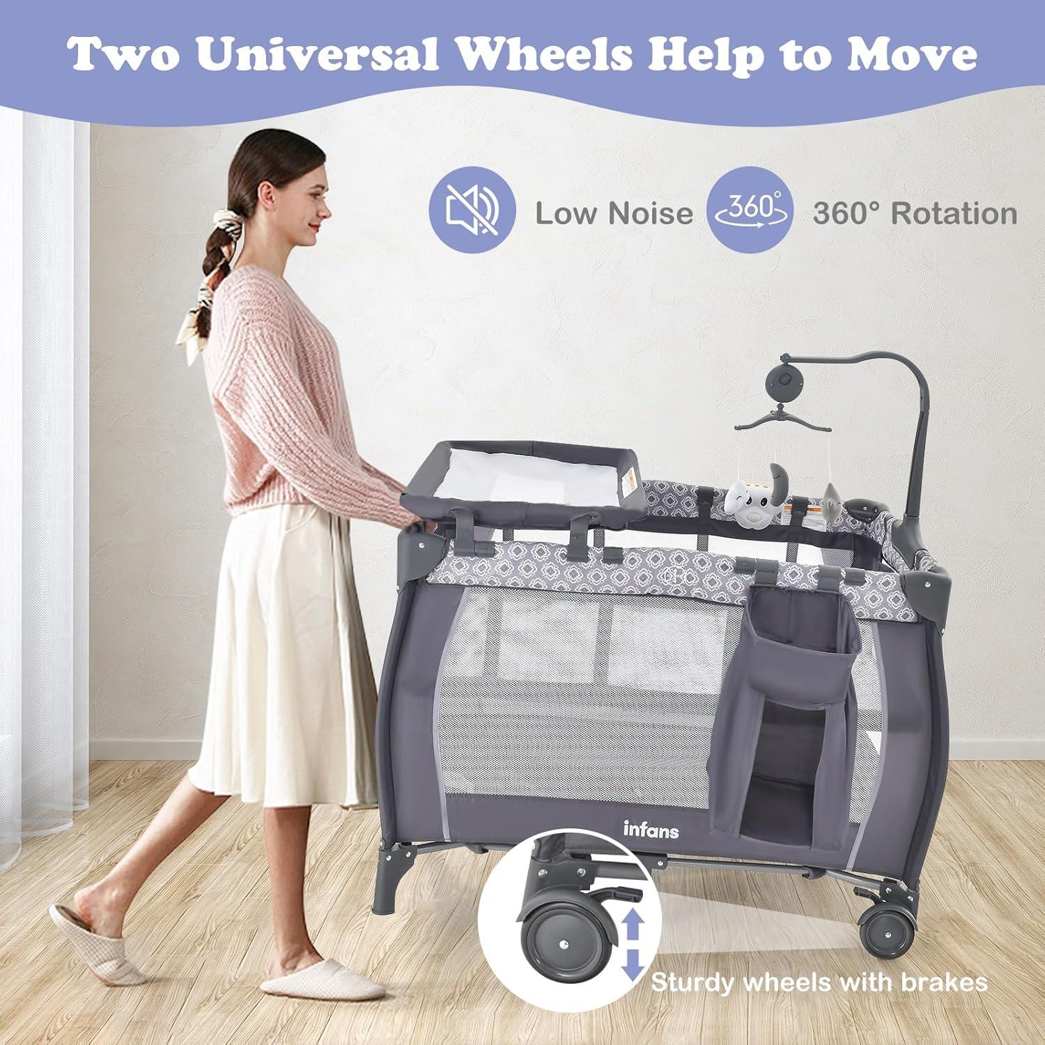 Get your hands on our exclusive INFANS 3 in 1 Pack and Play, Portable Travel Baby Crib Bassinet with Detachable Mattress, Newborn Changing Table, Foldable Playpen with Carry Bag and 2 Wheels (Cartoon)(Classic) collection, now at a discounted price.