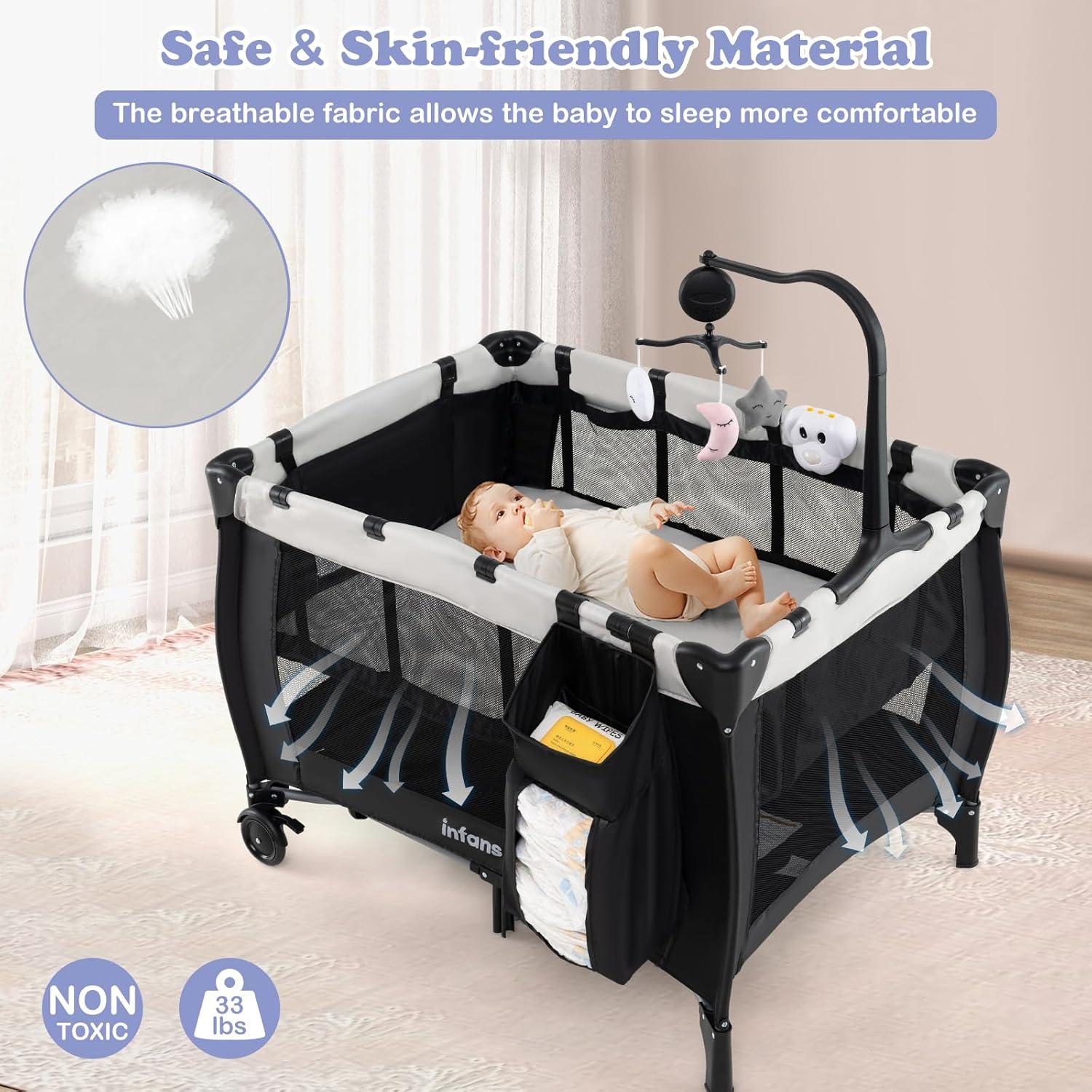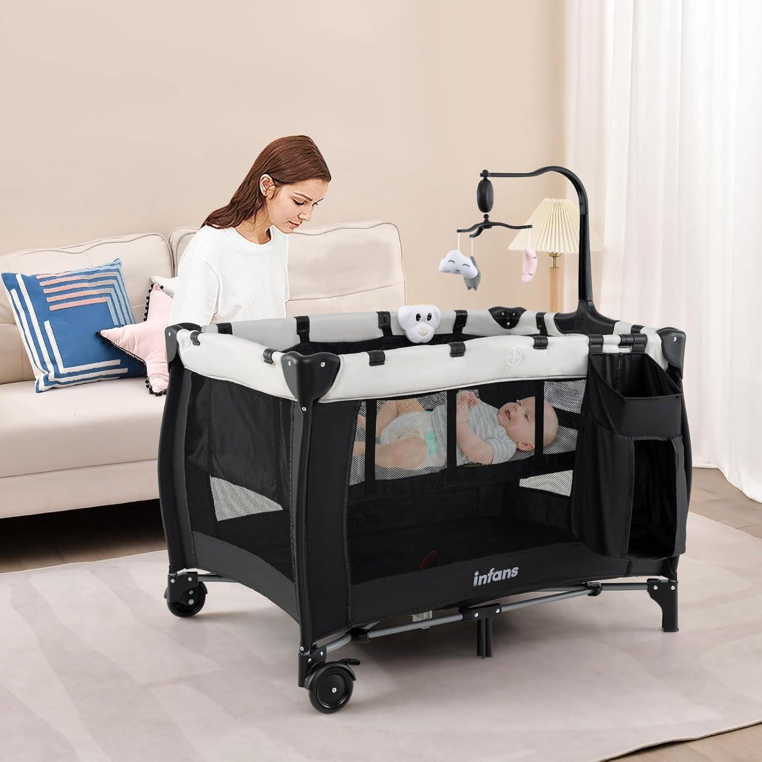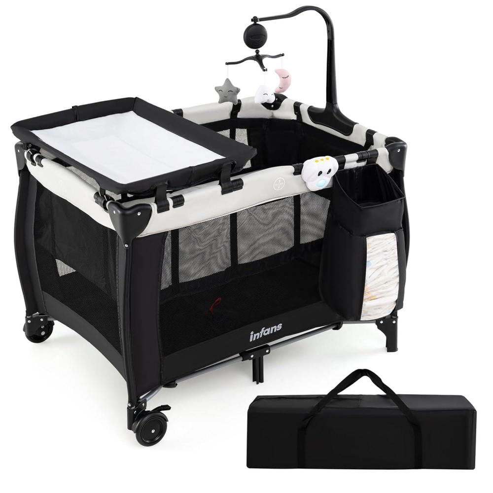 Safety is always a top priority when choosing a crib. INFANS 3-in-1 Portable Crib uses non-toxic, odourless materials to ensure a healthy and comfortable environment for your baby. A detachable diaper table provides daily care for your kids. This one also comes with a side pocket for some precious supplies. In addition, music box and toy hanging poles help infant sleep better and also provide entertainment during playtime. Overall, choose a 3-in-1 multifunctional crib with advanced features, combined with quality and safe materials, to provide peace of mind and practical parenting solutions for parents.