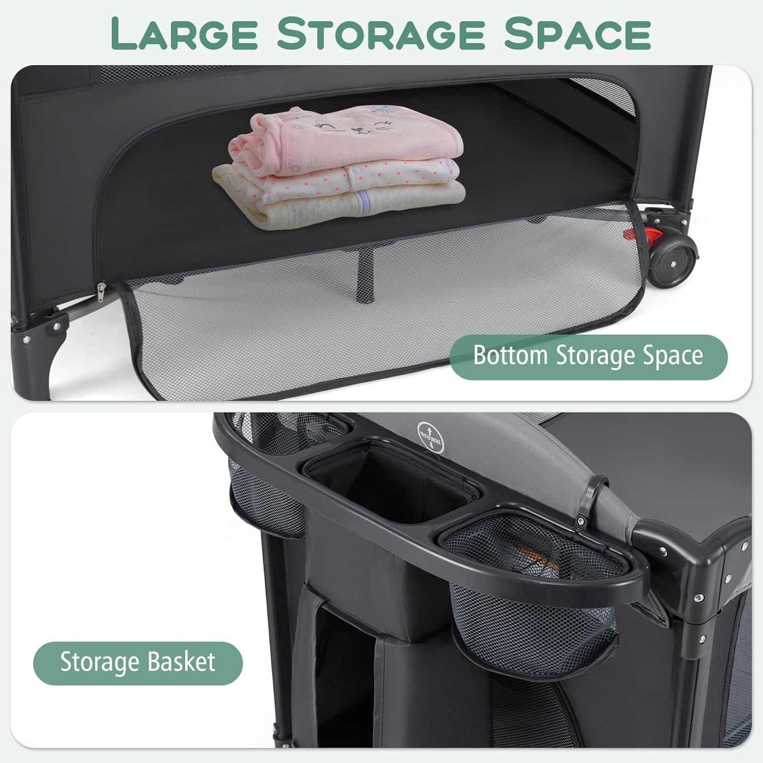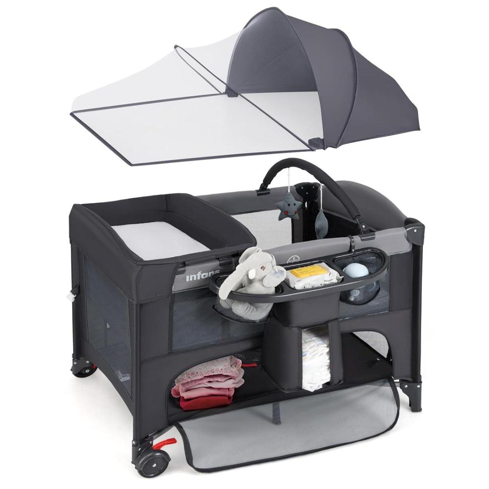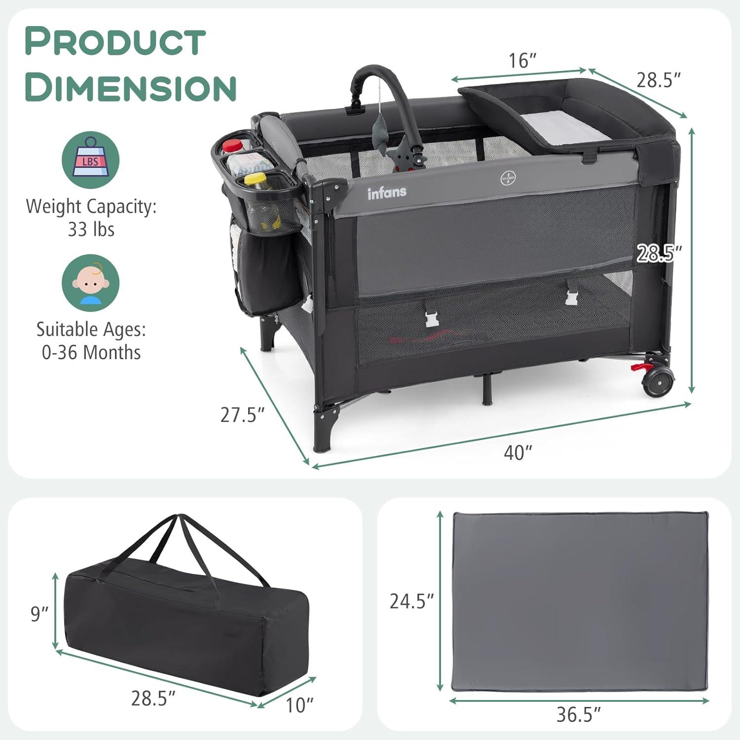 Multi-functional Baby Playpen: INFANS 4 in 1 pack and play can effortlessly convert into a baby crib, bedside sleeper, playpen, and detachable changing table, providing flexibility to meet parents' needs. The multi-functional design of the pack and play with bassinet accompanies the baby through each stage of growth