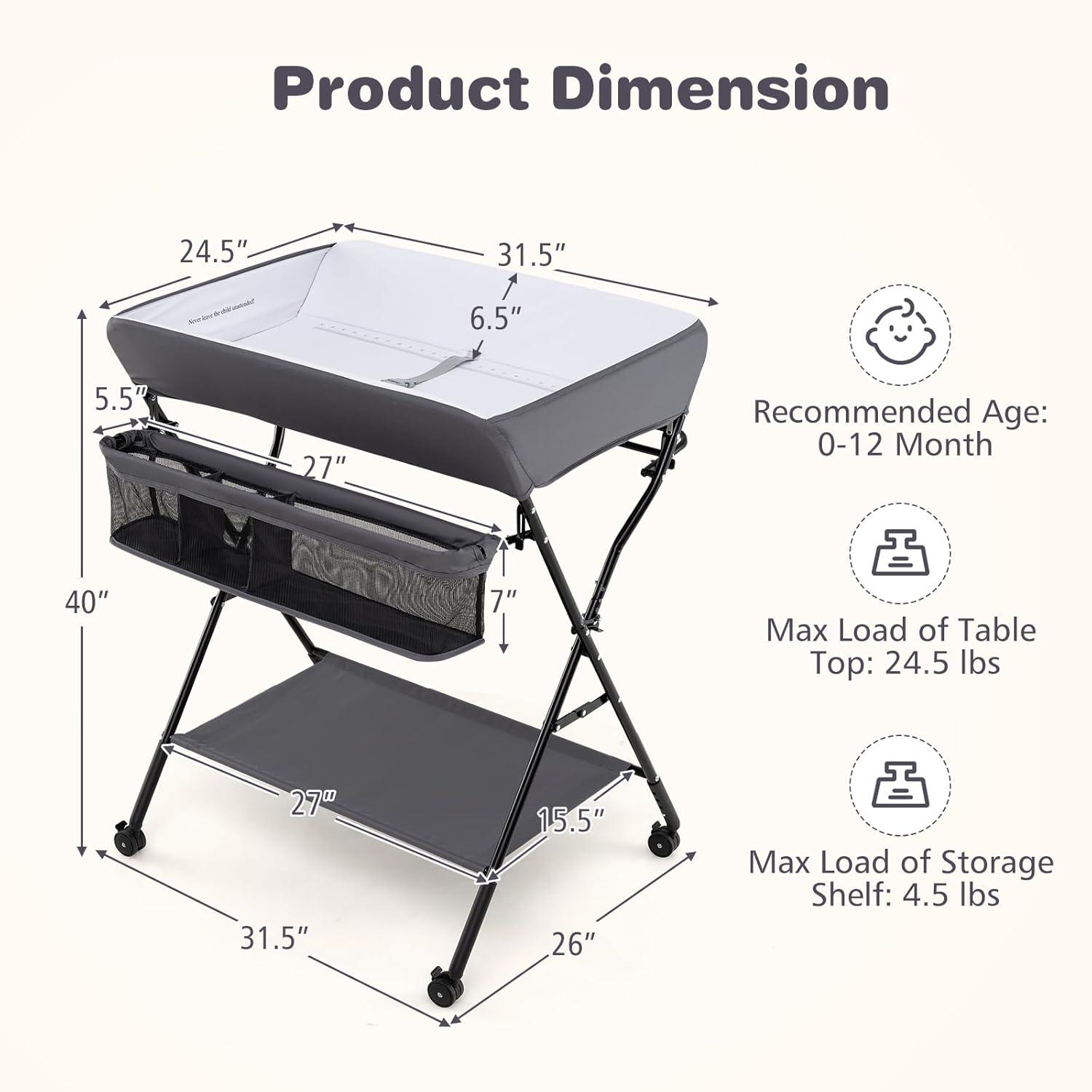 Compact Folding Design: The baby diaper station features a folding design. Simply pull out the support board and then pull the safety lock on the X-shaped legs forward and lift it up to easily fold the table. After folding, diaper table can be placed in any corner of the room, saving space when not in use