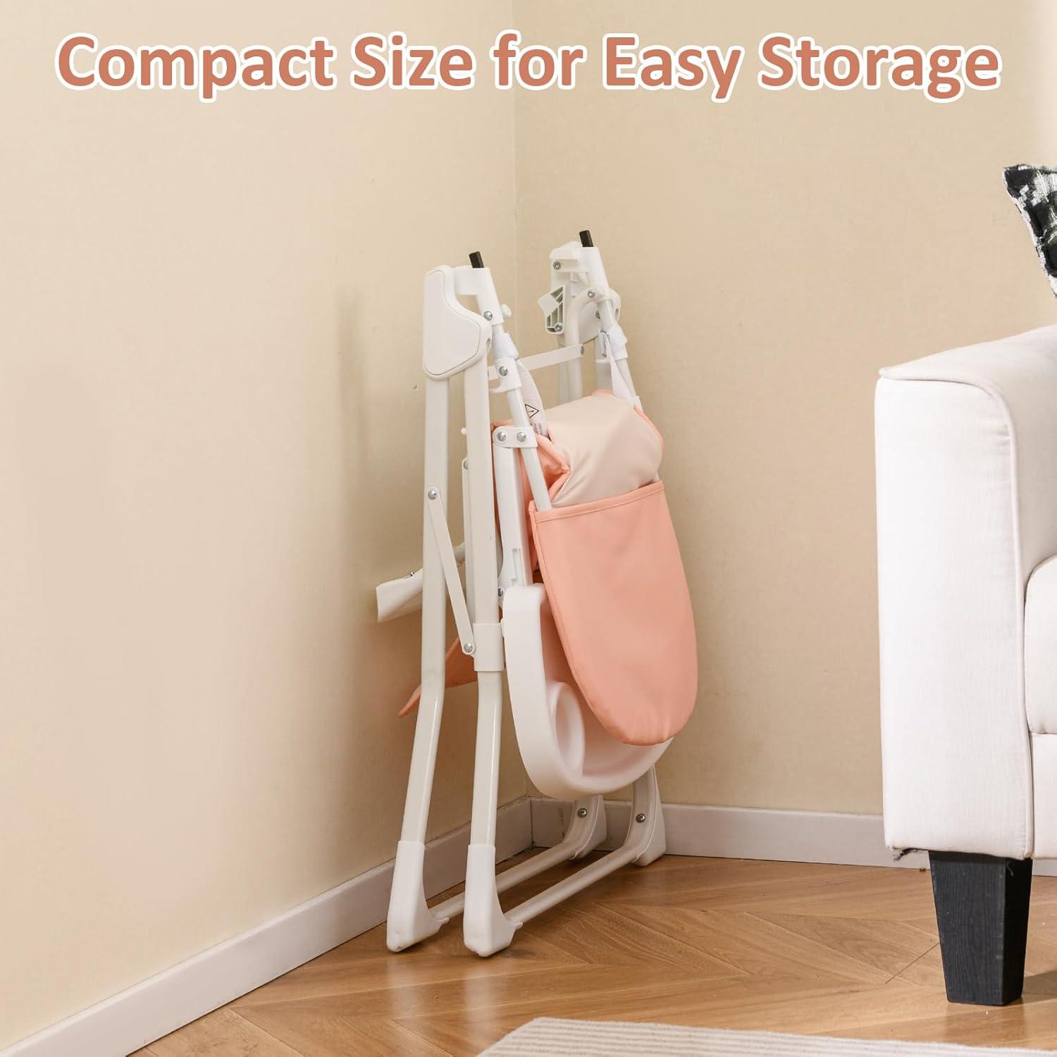 Safe & Stable Structure: To prevent the baby from rolling over due to play or external force, the folded high chair adopts a pyramid structure as the main framework, providing stable protection. In addition, the 5-point harness and safety flap help you hold infant in place and prevent your baby from falling out of the chair.