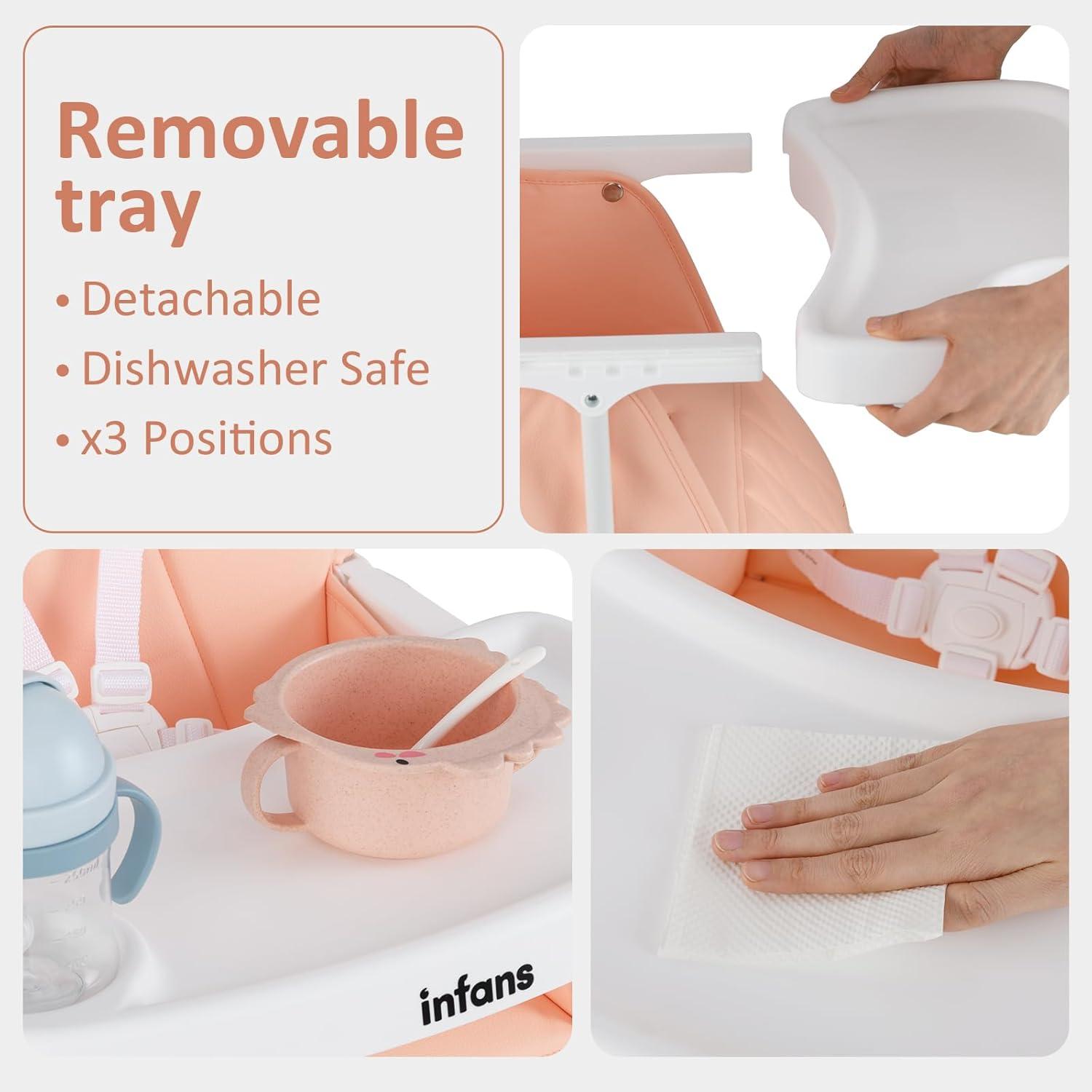 INFANS Baby High Chair, Quick Folding Portable Highchair for Babies and Toddlers with Adjustable Footrest Removable Dishwasher Tray PU Seat, Compact Highchairs for Baby Age 6-36 Months (Pink)(Pink)