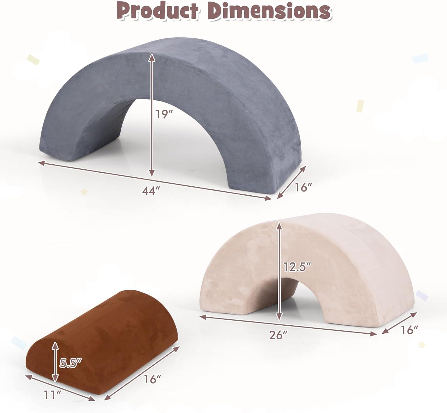INFANS Climbing Toys for Toddlers, 3pc Foam Climbing Blocks Rainbow Shaped Indoor Play Set, Soft Equipment Modulars Rainbow Crawling Tunnel Playroom Couch for Children Playroom Baby (Pink)(Gray)