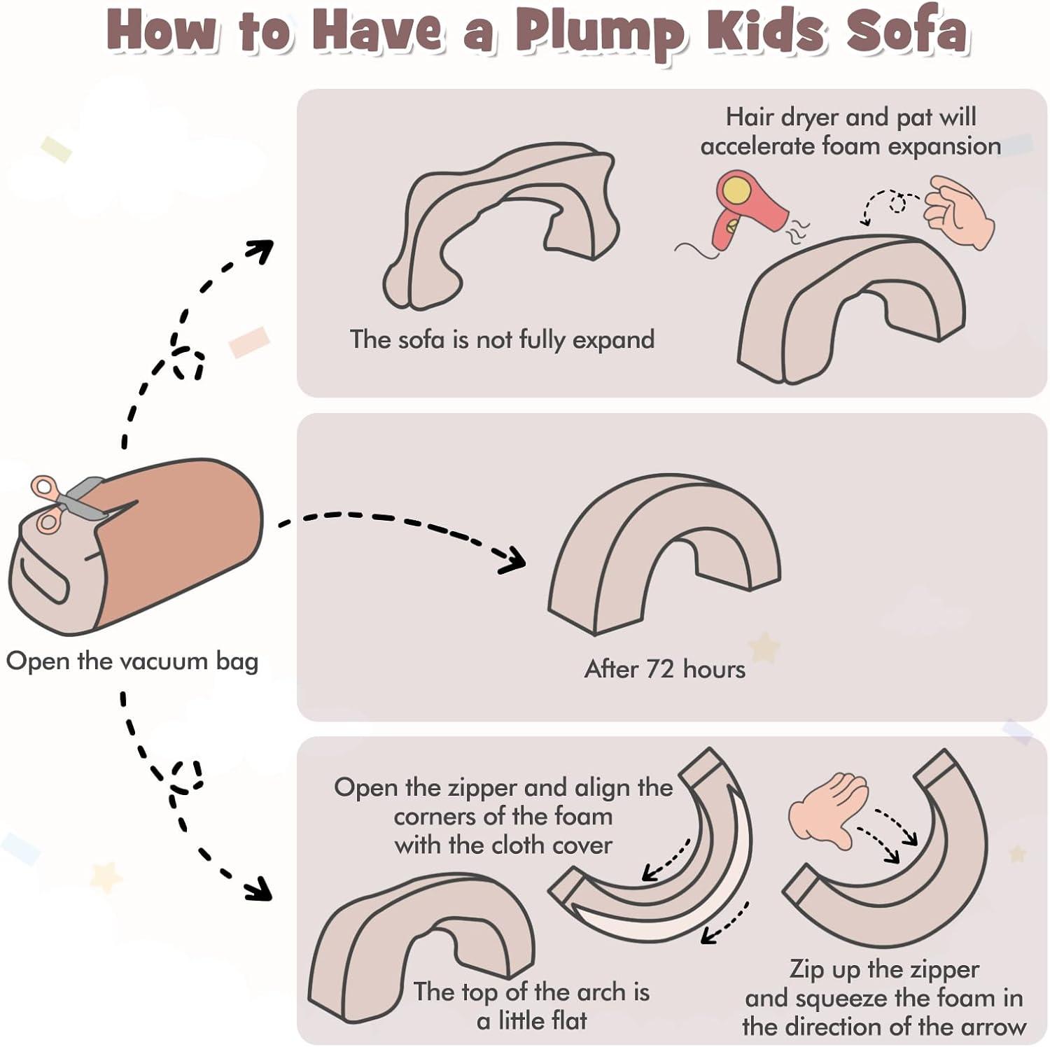 NOTE: As the product material is made of high density sponge and flannel fabric, vacuum compression packaging. Once the kid's couch set is opened, please wait 24-48 hours for the sponge to bounce back before using. If after 48 hours, found that the fabric of the product is wrinkled, using steam ironing can restore the fabric smooth.
