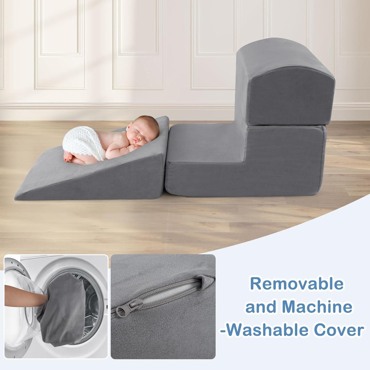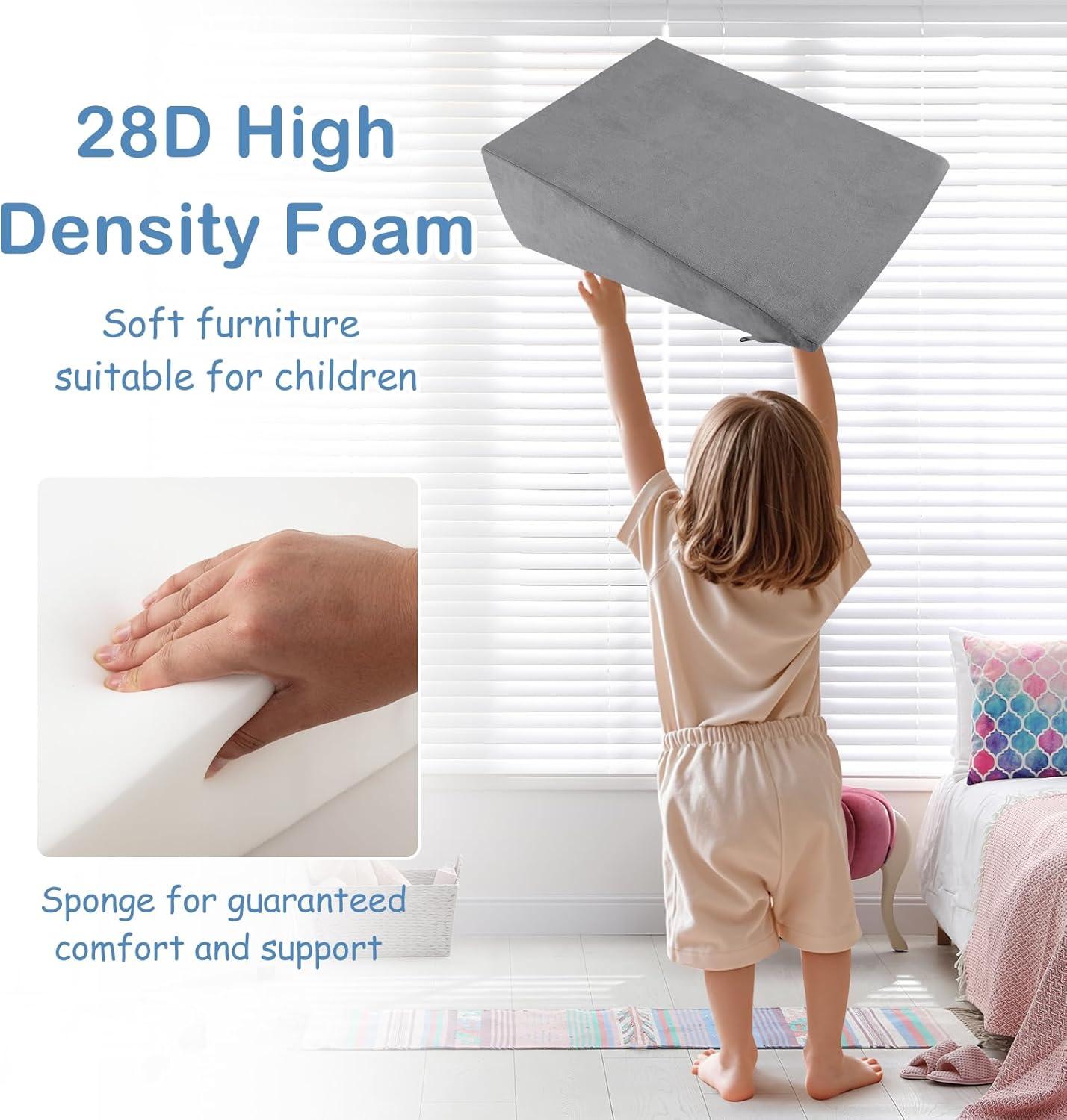 Premium High-Density Foam: For the ultimate in comfort,INFANS children's sofa features a soft and stretchy 25D filled sponge that not only ensures the climbing block provides excellent resilience and durability, but also lasts a long time. Give them the confidence to explore and play safely with reliable support.