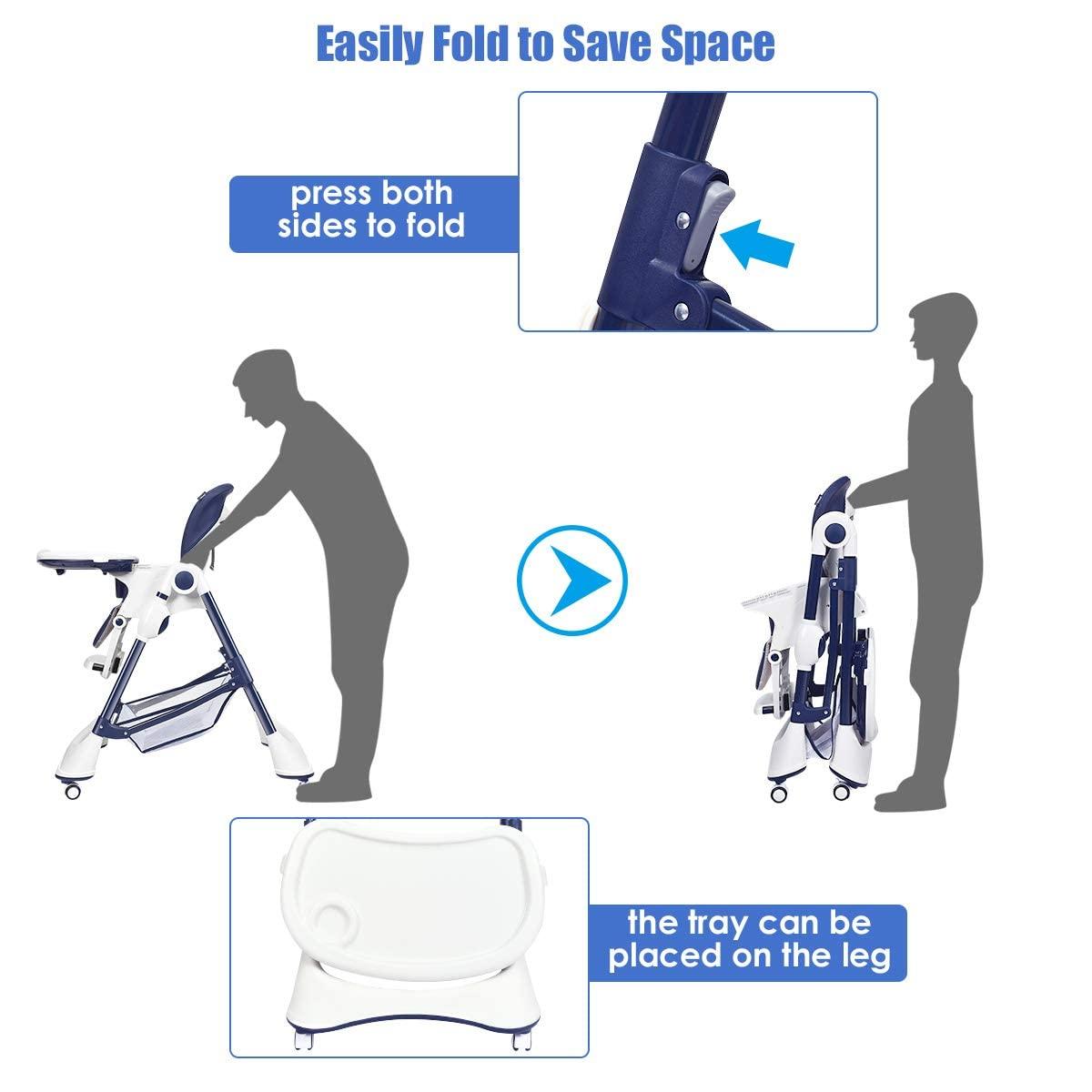 【DETACHABLE LARGE STORAGE BASKET】Considering the trouble getting baby supplies for moms, we added an extra large mesh storage basket to the highchair. It’s helpful to store bibs, towels, baby toys for quick access. When the baby needs feeding or playing, it's handy for moms to pick up. The four hook makes storage basket easy for moms to remove and clean. The self-standing folding can be placed in the corner or next to the cupboard without taking up too much space when you're not using.