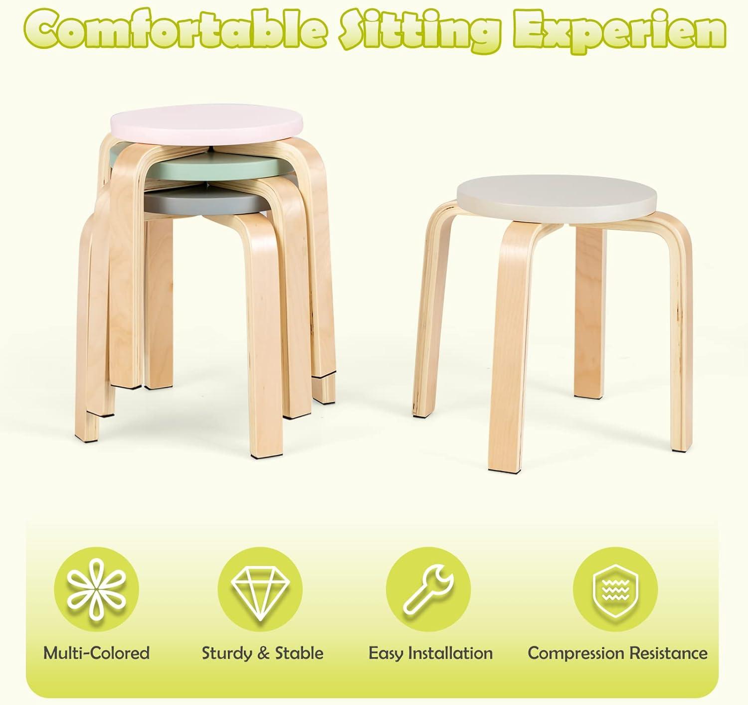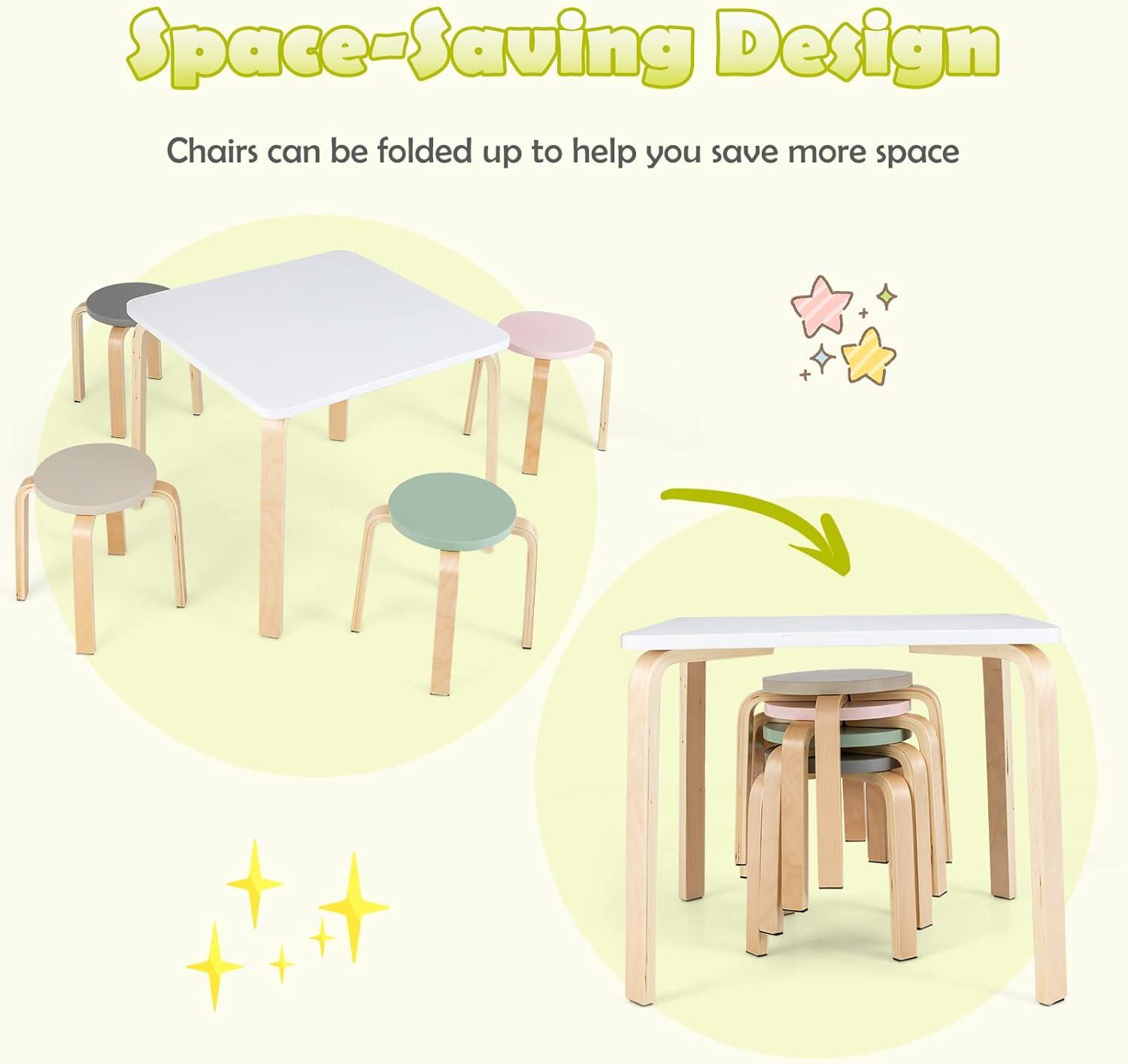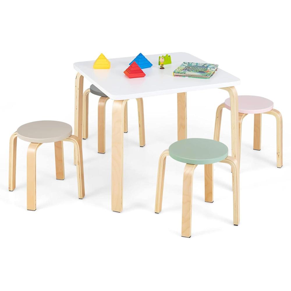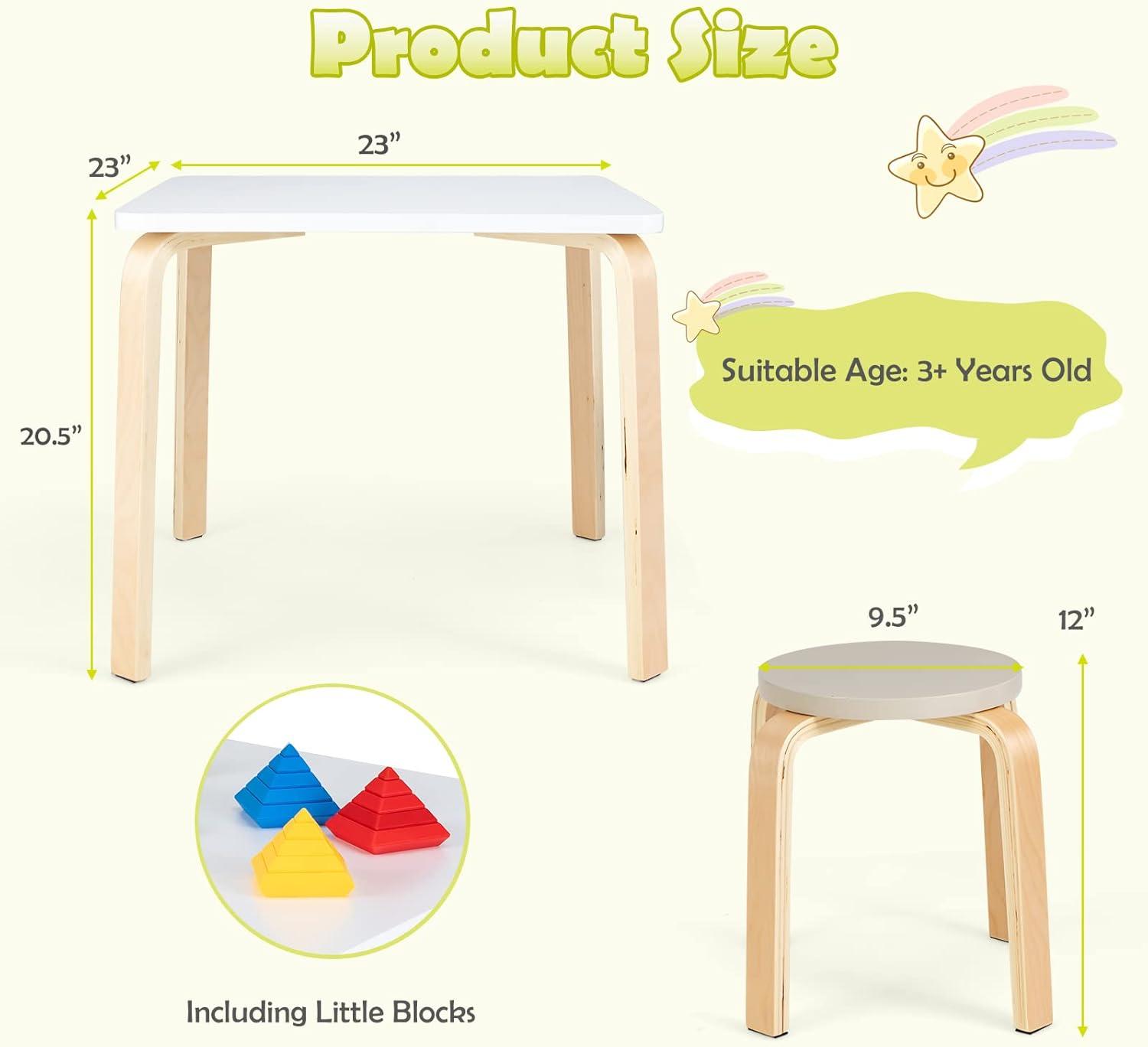 5-PIECE KIDS TABLE & STOOL SET: The INFANS children's table stool set includes a table, four different colored stools and additional small block set. Your kids can study, draw, eat and play with toys with their friends. Weight Capacity of table & stool: 55lbs