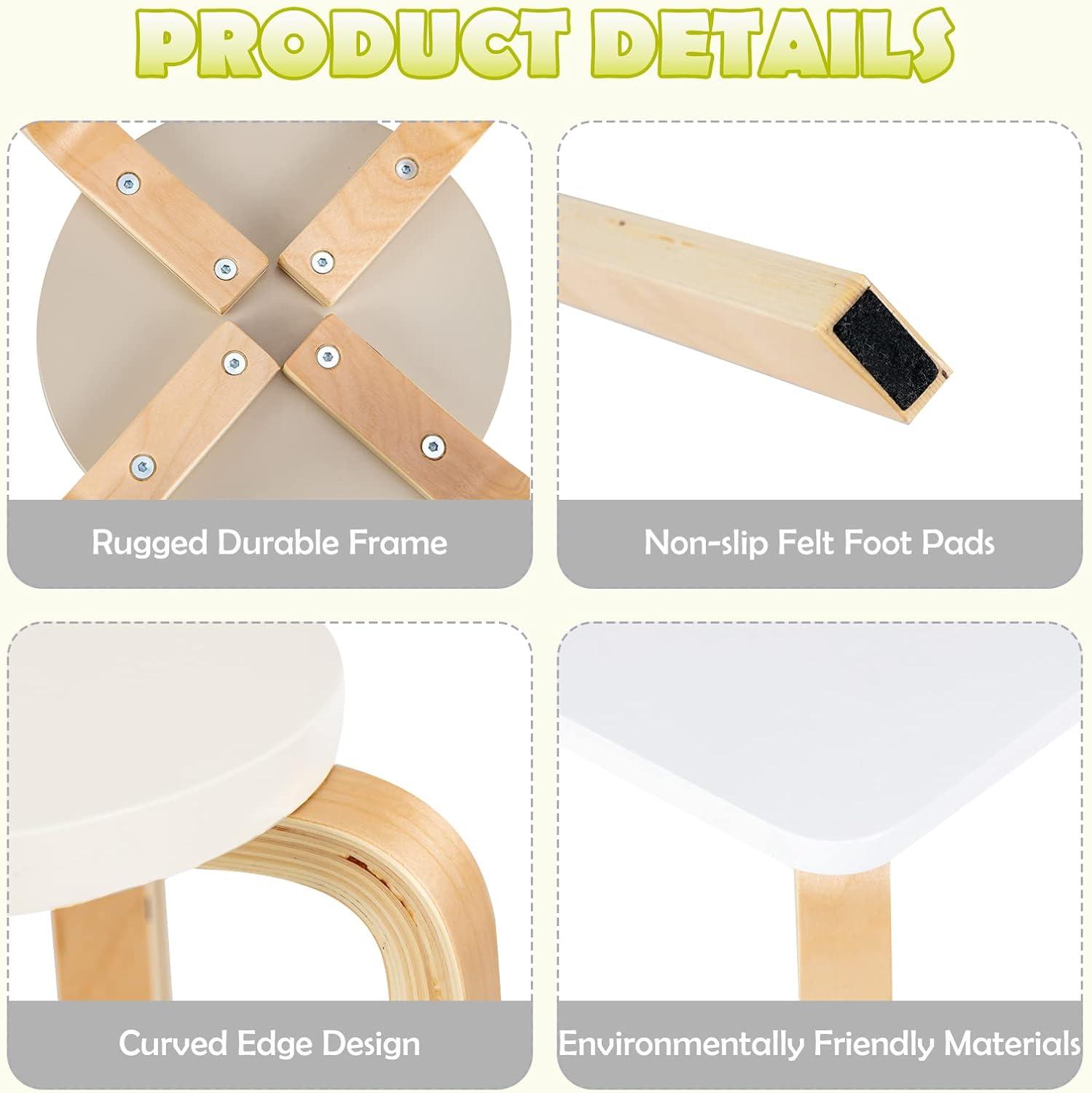 PREMIUM QUALITY MATERIALS: Our wooden table and stool sets are made of high quality poplar and birch, which are strong and durable enough for long time daily use. In addition, the wood surface Is sprayed with environmental protection paint.