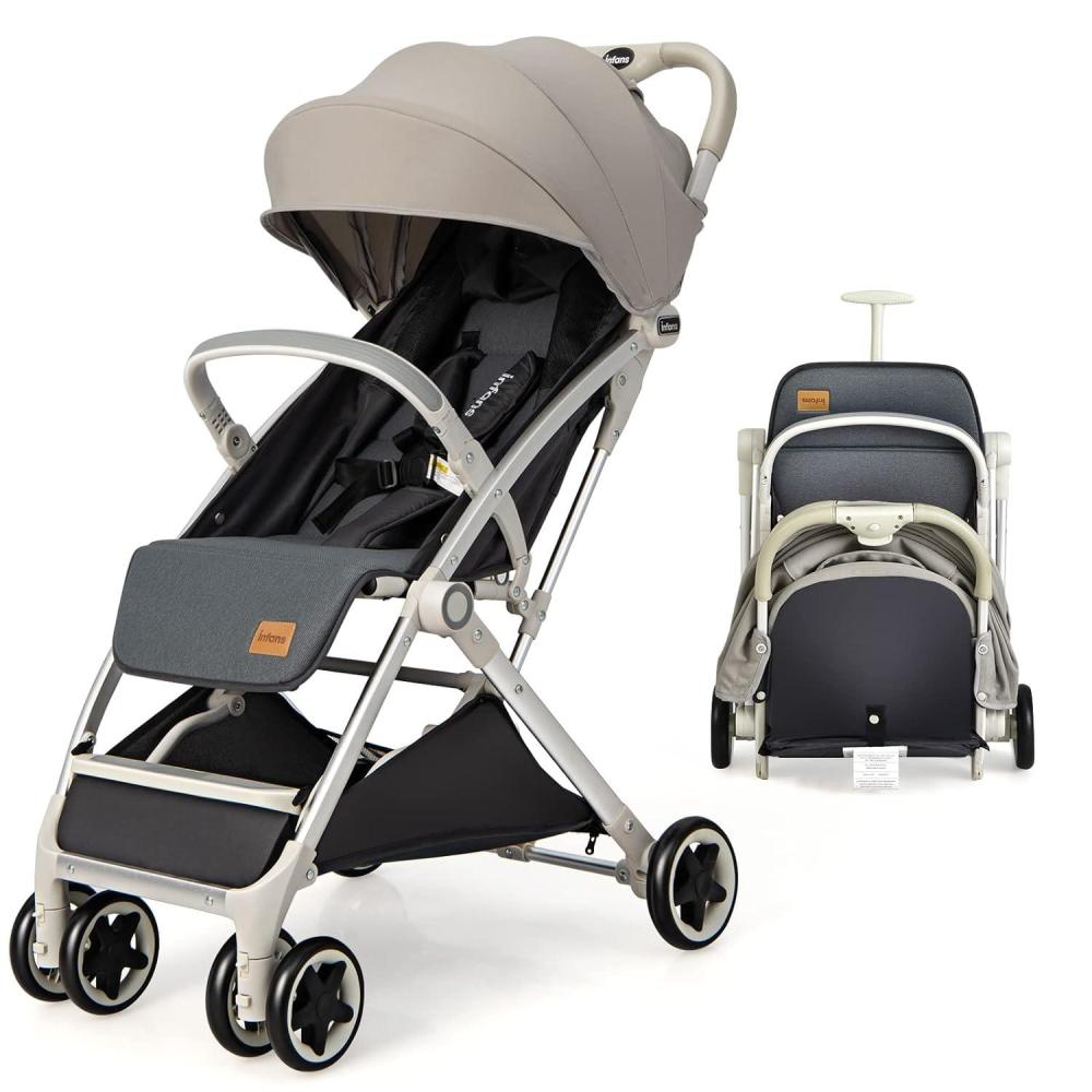 COMPACT STROLLER FOR TRAVEL: INFANS Lightweight Baby Stroller weighs 14.4 pounds and is only 23.6 “x 20.5″ x 9.8” when folded, and can be easily stowed in the trunk of your car or carried on an airplane while traveling. Also, extra pull rods make it easy for mom to carry this lightweight stroller anywhere.