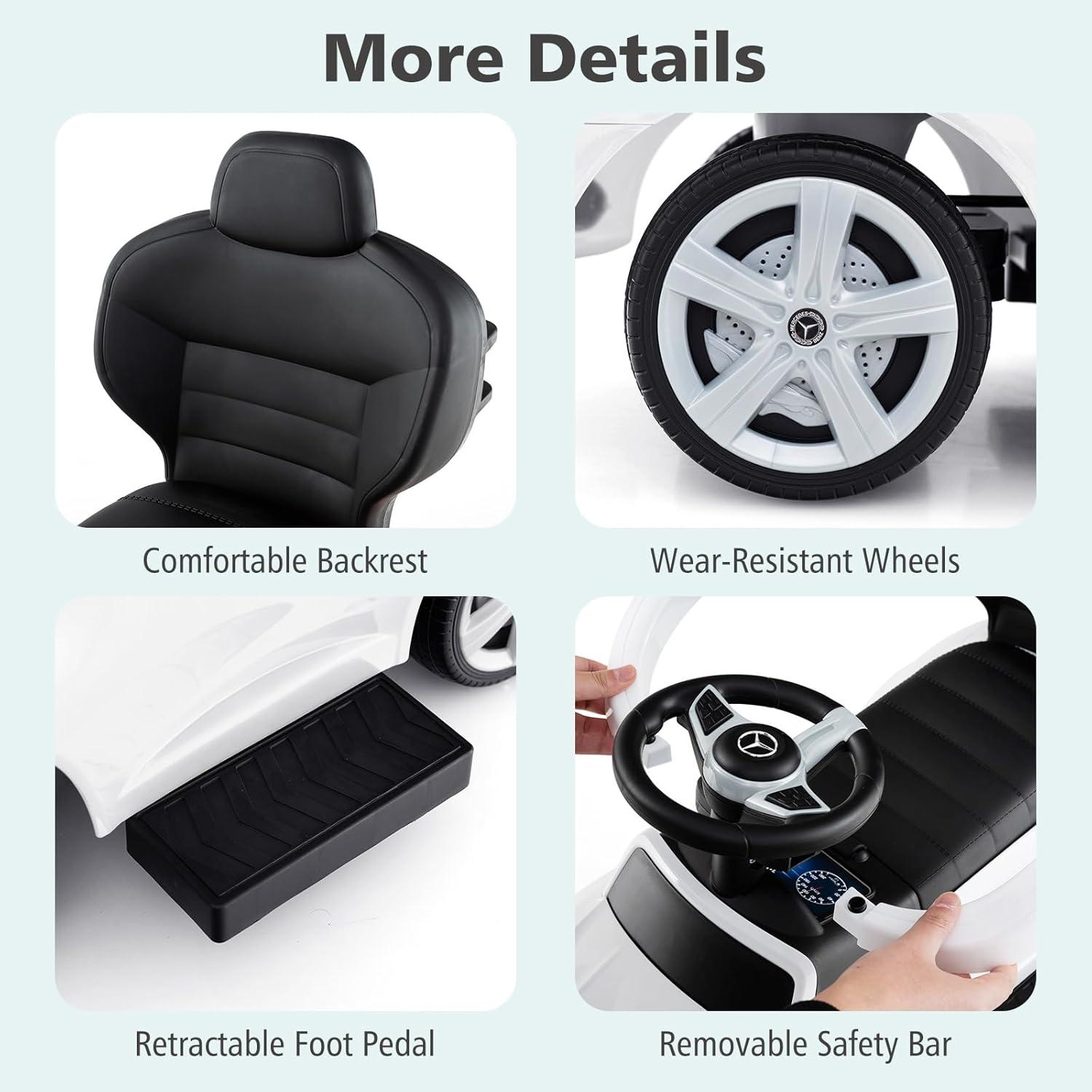 Licensed Mercedes Benz Push Car for Toddlers by INFANS, 3 in 1 Sliding Walking Car with Push Handle, Horn, Music, Underneath Storage, Foot-to-Floor Ride on Toys for Boys Girls (White)(White)