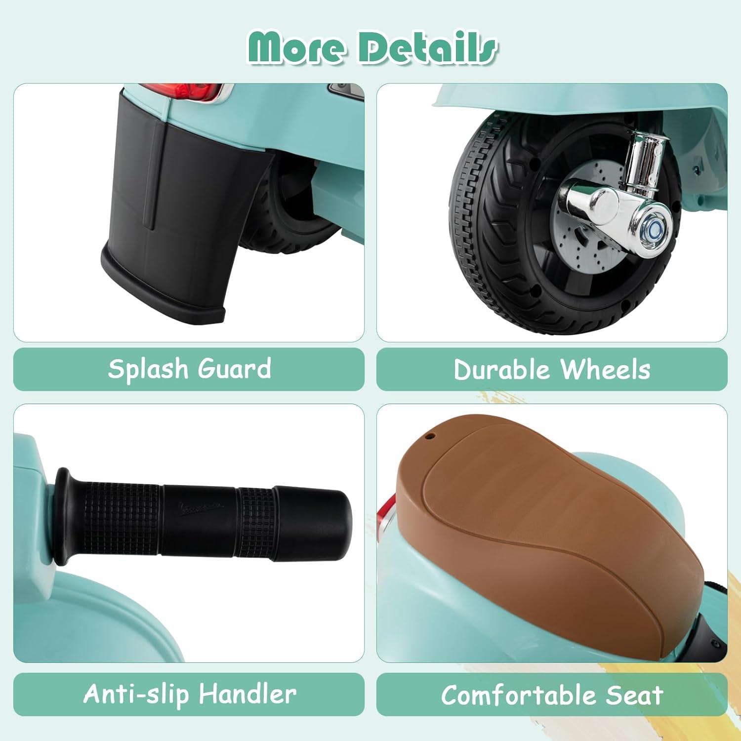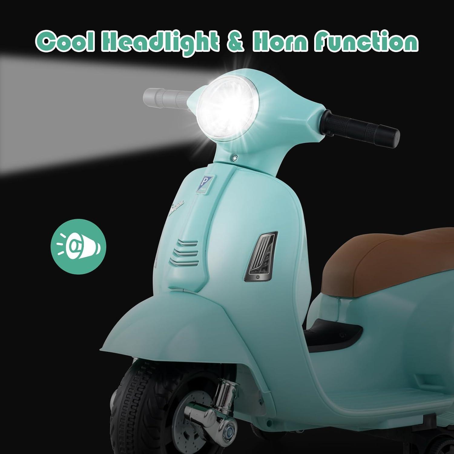 Licensed Vespa Scooter Motorcycle: INFANS kids motorcycle is a specially designed motorcycle for children with the classic appearance authorized by Vespa, allowing child to enjoy endless fun in the cool appearance. Moreover, the bright front light can illuminate the surrounding environment at night