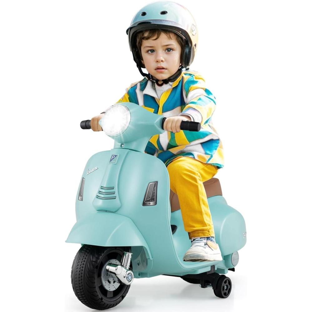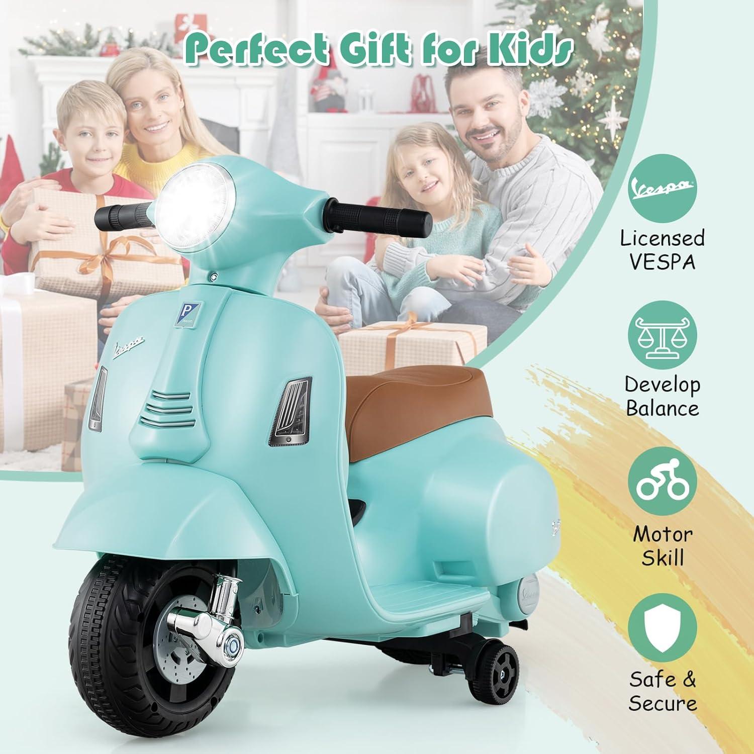 Licensed Vespa Kids Motorcycle by INFANS, 6V Battery Powered Motorbike for Toddlers with Training Wheels, Horn, LED Lights, Electric Ride on Toys for Boys Girls Aged 18-36 Months (Green)(Green)